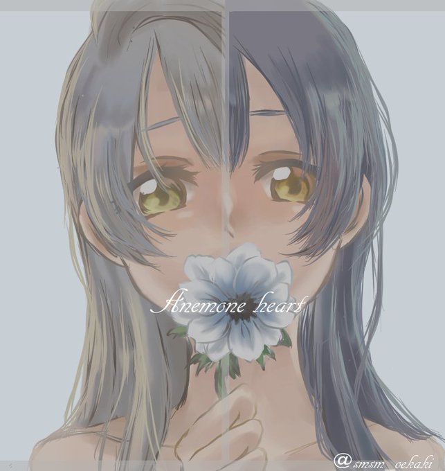 「お花×東條希×南ことり」ということで、プール編覚醒前衣装で描かせていただきました!何気にのんたんデジタルで描くの初めて…!