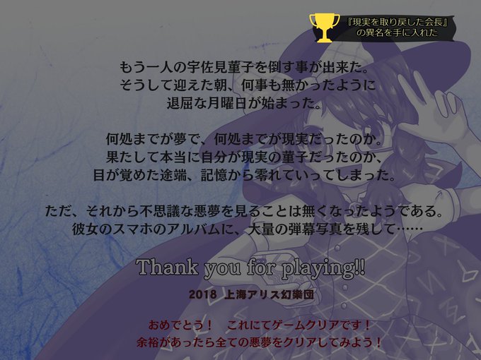 取り敢えず秘封ナイトメアダイアリーのストーリーを完全クリアしました。Normalシューターでもストーリーはクリア出来るので、まだの人は頑張って下さい!