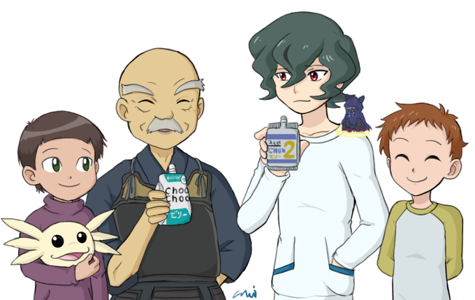 I have a LOT of OCs but this little guy is easily my favorite. His name is Sekai and he's Arukenimon and Mummymon's son! He's like a ray of sunshine personified.