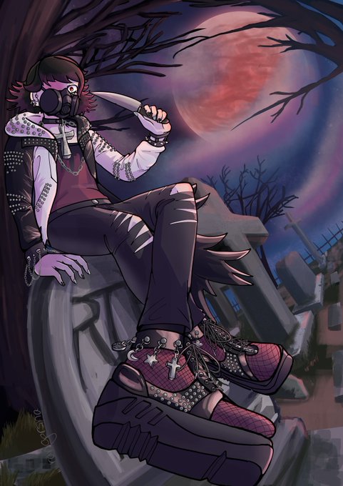 [oc] clip studio crashed when i finished my first attempt but its still goth day somewhere in the world so i had to try again ,,, the first was cooler but it's so late