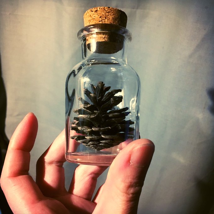 ようやくカサが開いて松ぼっくりボトル完成☆ とてもきれい。ボトルのサイズを考えて松ぼっくりを選びさえすれば誰でも作れるのでオススメです。