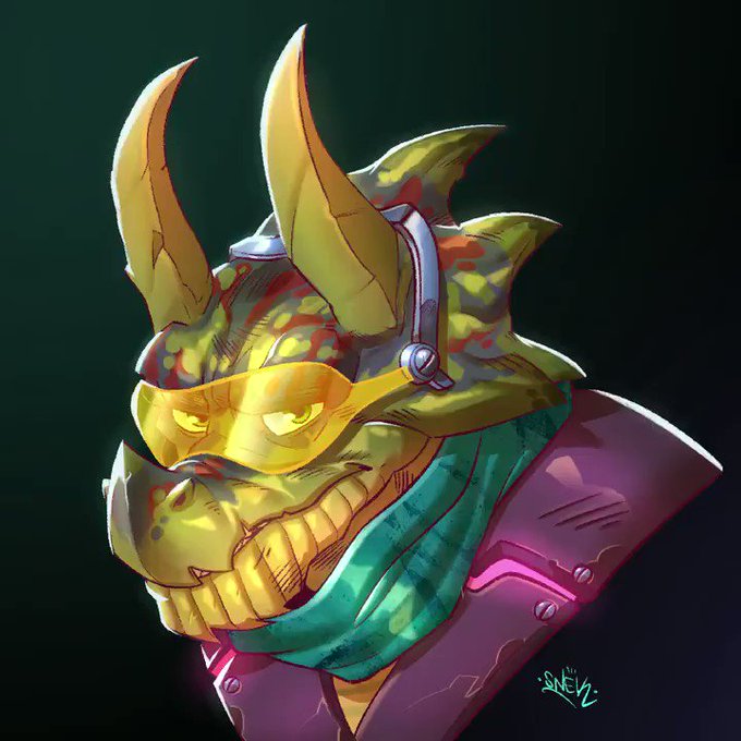 Process on my "hi-tech triceratops" portrait! done in @Procreate #timelapse #portrait #characterdesign #dinosaurs