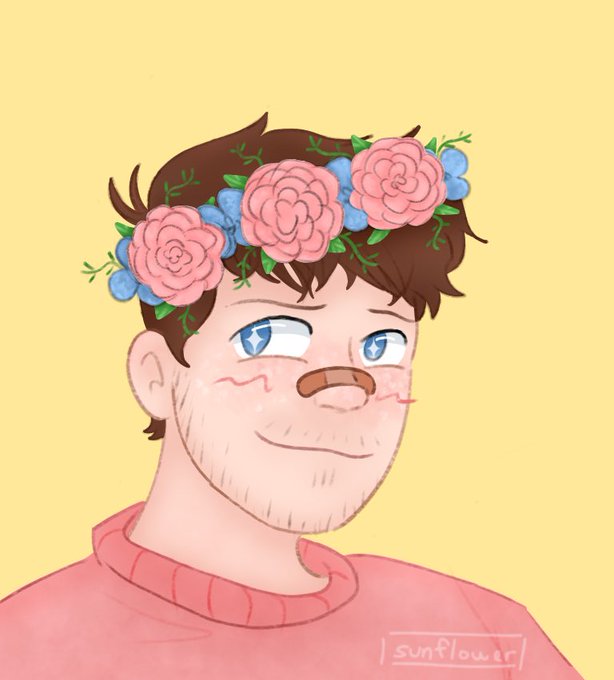 a flower crown for connor :D ✨🌸 (I think I’ve finally found an art style that I like!!!) 3 versions of the background bc I couldn’t decide