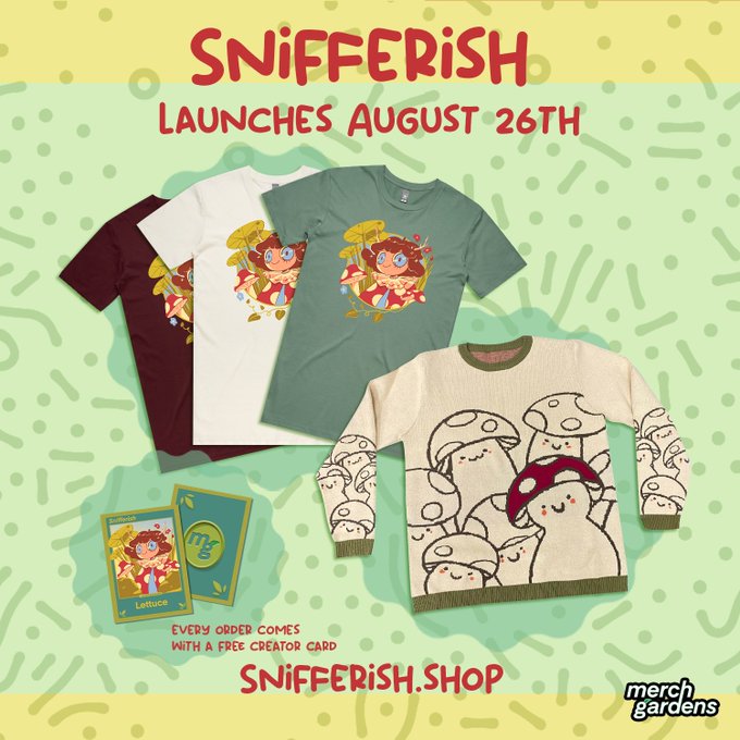 Hey guys! It’s official! My merch launches August 26th, this FRIDAY! Sweaters, T shirts, and enamel pins :) w/ @MerchGardens