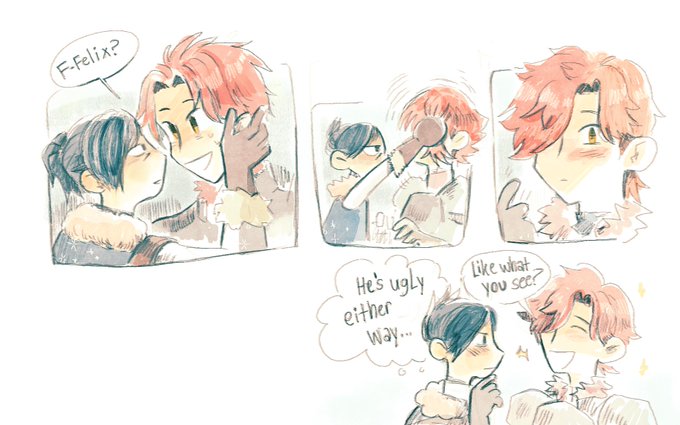 sylvain felix shenanigans as im still trying to get used to csp heh :3 felix just tryin to remember how sylvain looked like while they were at school
