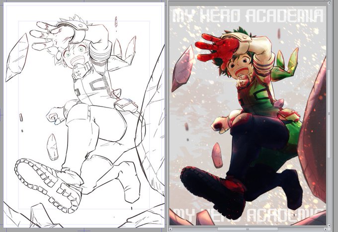 #皆さん線画と塗った後を見せてください 描き方が少しずつ変わっているようないないような