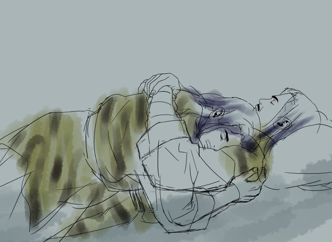 吉川水滸伝の解珍解宝、描きかけ。虎狩り途中で野宿してるとこ。一応新版ドラマの人で描いてるつもりなんだけど、分かりにくいからあの鉢巻を描いた方がいいのか…でもこの時点では多分まだあの鉢巻してない…と悩み中。