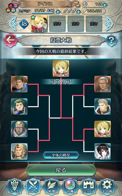 アメリア陣営勝ちました。じわじわと詰め寄られるということもありましたが、本日早朝のタイミングからは一定の差を保ちつつの優勢を取り続けていたことにより、振り切れました #FEヒーローズ