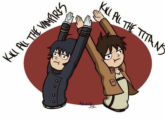 -Я уничтожу всех титанов!!! *превращается в титана* -Я убью всех вампиров!!! *его бойфрэнд вампир* Велкам в клуб абсурдных заявлений