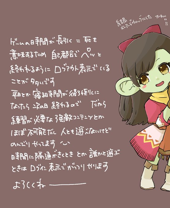 自己中プレイスタイルなこの頃です。夜ゲームしたら次の日アラーム通りに目が覚めないのでたぶんそもそもインしないのが正解 ところで(非表示)がずっと謎なんだけどあれってログアウトとどう違うの?