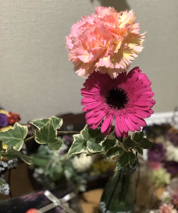 今日はガーベラを連れ帰りました 花瓶はコーラ
