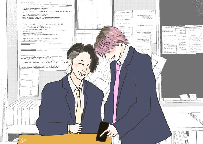 ニコイチ💛💗 ほんと楽しそうだった~。 ※背景はお借りしました。 #それスノ美術部