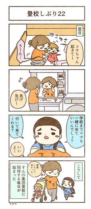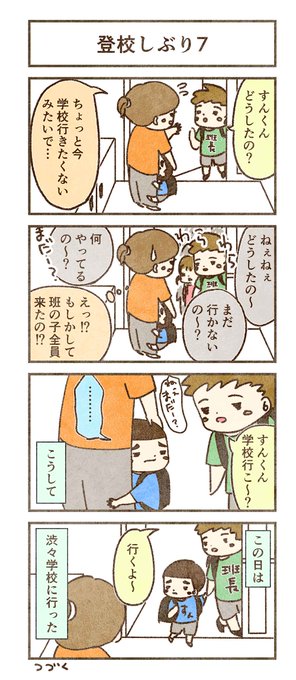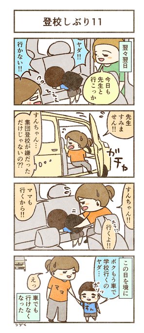 すん(息子)の登校しぶり 1 #育児漫画 #子育て #4コマ #コミックエッセイ #漫画が読めるハッシュタグ #登校しぶり #登校拒否 #不登校