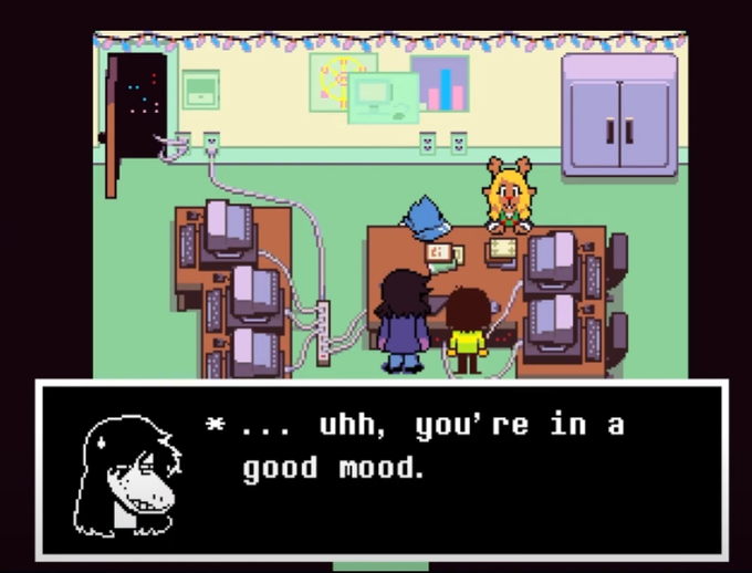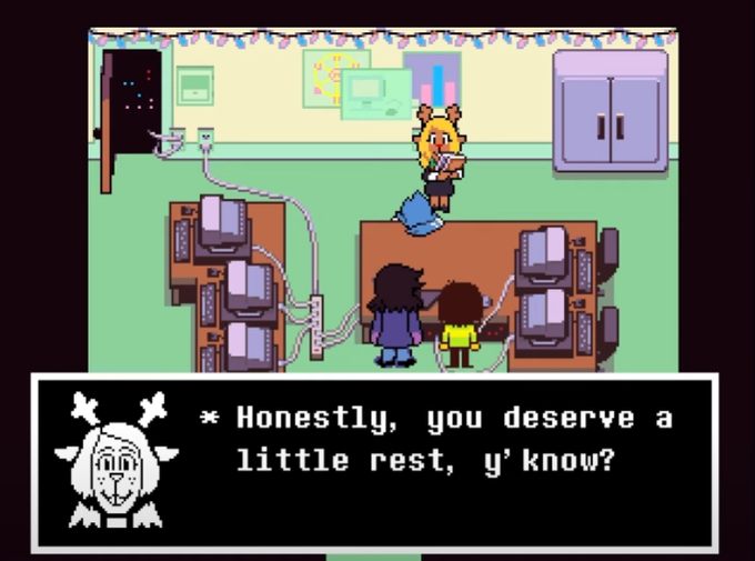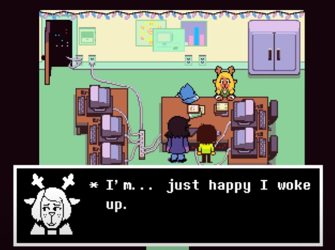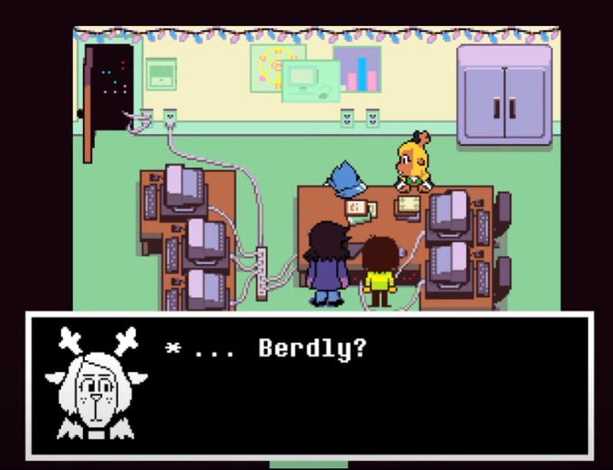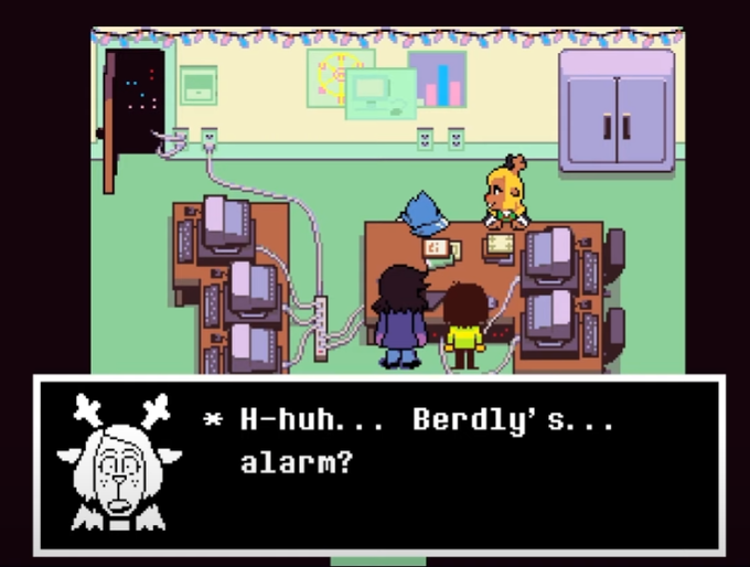 berdly hasn't woken up yet. it barely looks like he's even. breathing. and noelle doesn't acknowledge this for a second, not at -