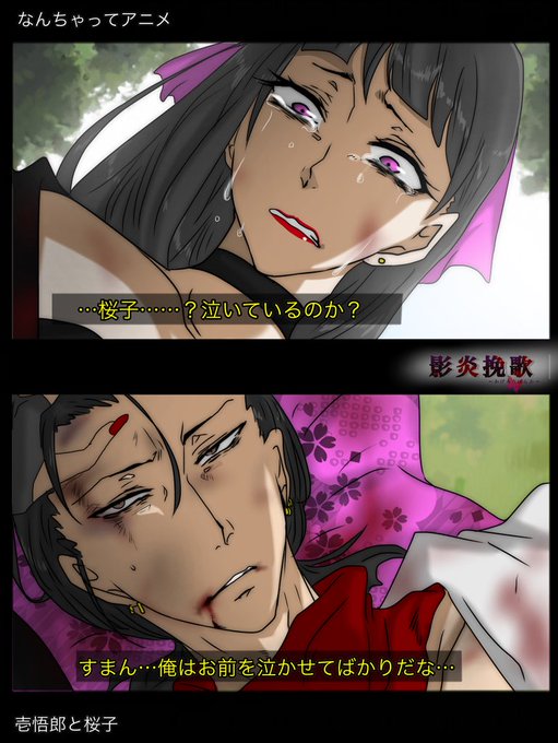 影炎挽歌なんちゃってアニメ風〜! なんちゃって壱桜と一茶〜!! あーー自己満足、ほんとはもっと描きたかった(2枚で諦めた) #影炎挽歌