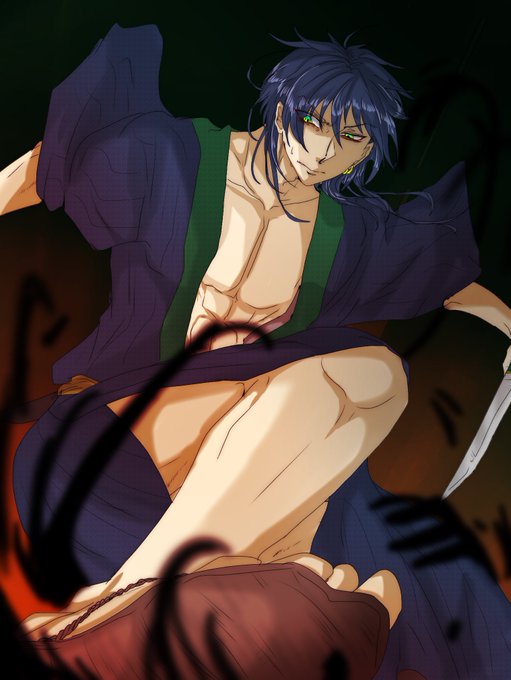 「ねえアンタ、強いの?」 田心半蔵。田心忍流末弟、鬼灯の忍。 穏やかに見えるが腹が黒い。 長兄影丸に対し強い劣等感を感じており、影丸が関わると軽率に病む #影炎挽歌