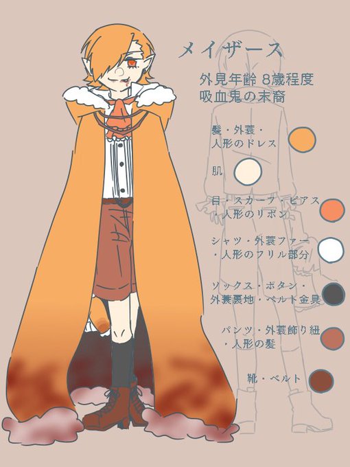 こちらしーそんがキャラデザした吸血鬼のメイザースくん。ぬさぎさんの手により膝小僧とおてての綺麗な美少年となりました。圧倒的感謝………!