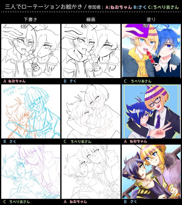 さくちゃん(@ pulsate_s )とろべりあさん(@ narise_sb69)と 🐝🍱ローテーションお絵描きさせて頂きました〜!!💗💗