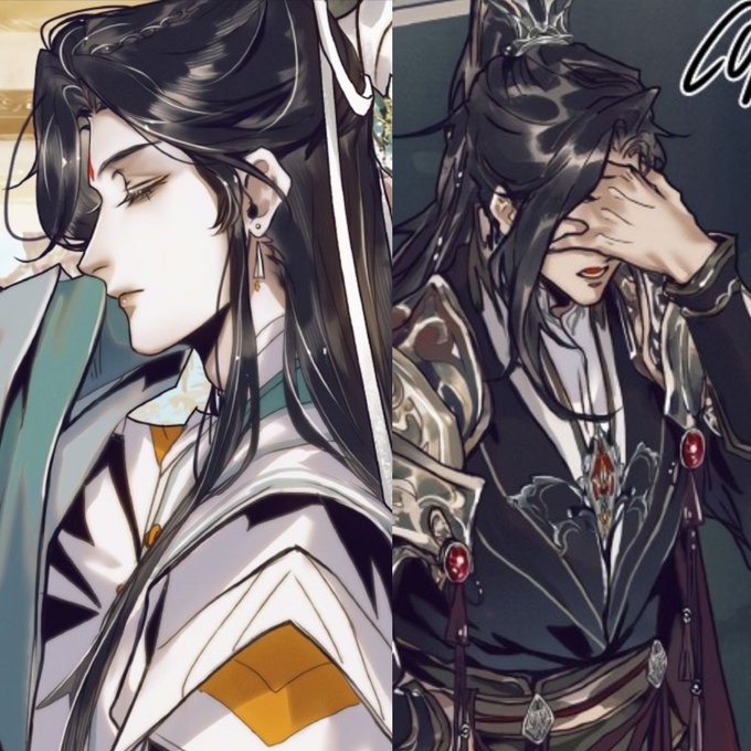 Okay this is so sexy of them look at Xie Lian’s outfit he is blinged out! We only ever see him in his simple robes but he’s looking as bedazzled as his husband now <3 he is being taken of 🥺
