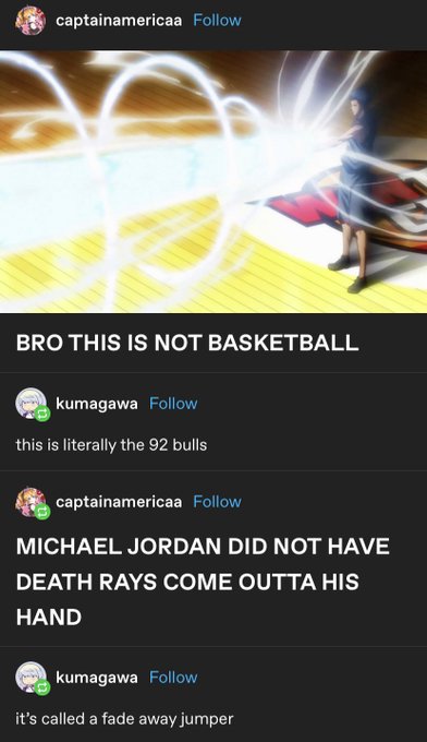 i fucking love knb so much. i’ve never finished it. its the greatest comedy anime ever made. i think about ‘its called a fade away jumper’ like twice per week.