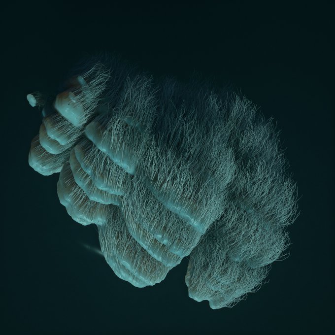 experiments with rendering 3d gan coral ~ (the hairs are supposed to be a symbiotic bacteria which grows in long filaments)