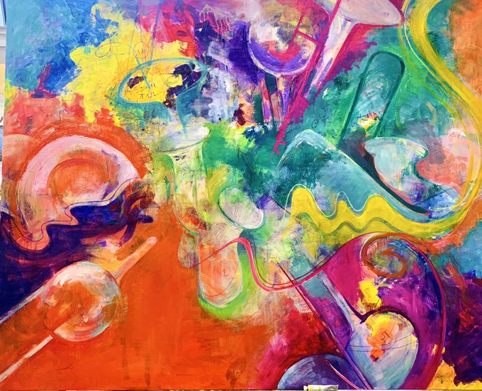 音と動きは見えない糸でつながっている 🎺🎷🎀💖 油彩・キャンバス F100 #USJファン #HBB #USJファンアート