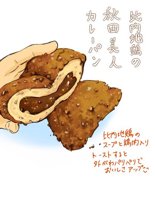 暑い時に辛いものが食べたくなる不思議 意外に本格的な味!たけや製パン「比内地鶏の秋田美人カレーパン」 #MediBang #スケッチ #秋田 #秋田パン #たけや製パン
