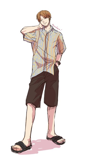 めいちゃんのセンター分けに加えて柄シャツがいかしてた!下はわからんけど首いたポーズ落書き #めいちゃん美術館