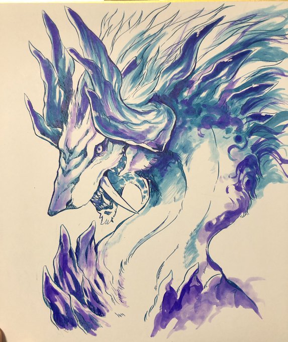また数年ぶりに属性別人外娘描いてるけど、雷属性のやつは去年描いたこの子が気に入りすぎてこのままで良いかなと…