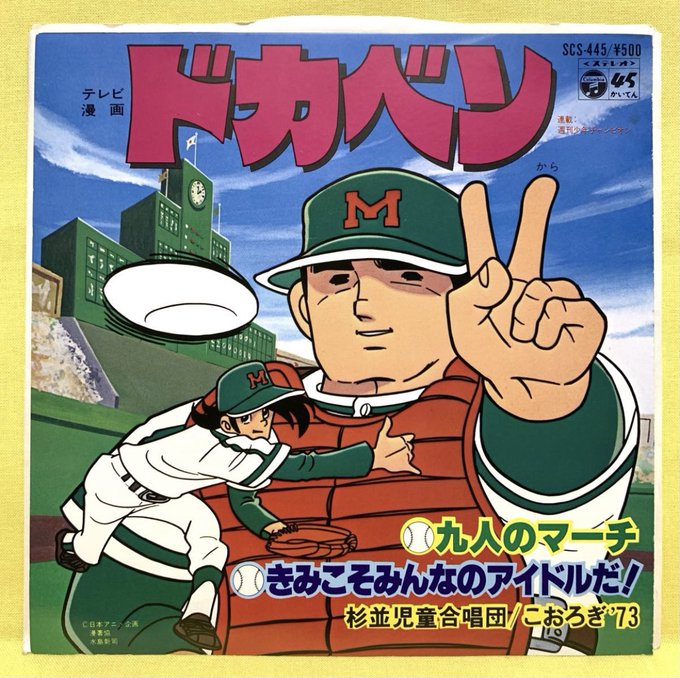 #渚の日 蛸の日に蛸田をツイートしたからには、こちらもツイートしなければな使命感😅 #ドカベン 渚圭一 cv古川登志夫さん 生意気キャラ演じたら日本一👏 里中くんを差し置き、ジャケットに収まる渚に怒り心頭な私💢💢 しかも、ユニフォーム色が正しく緑になっている貴重なジャケット絵 #水島新司