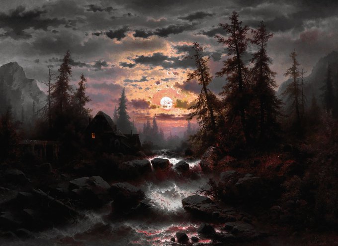 Mountain Stream in the Moonlight, 1905, by Albert Rieger