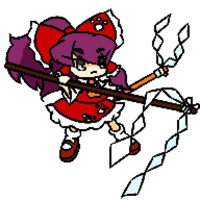 東方新作の。の。 霊夢さん。 お祓い棒(御幣?)はブキ。
