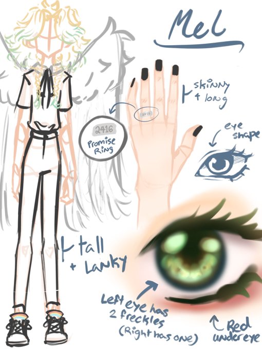 @sakurii_chi my persona mEL/Soul (Colored pics are Mel, sketches are Soul. Same person, just one is me irl and one is nOT). Take the notes with a grain of salt, especially the one with the eye details, it was for someone with a really realistic style nd they asked for more dEtails :]