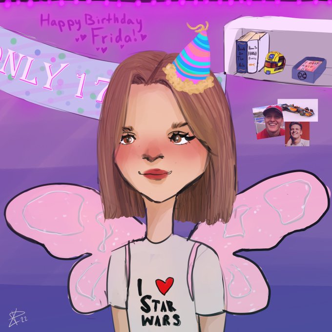 HAPPY BIRTHDAY @FRIDAENPINA MWAHHHHH💜💜💜🤌 HERE'S A WONKY DRAWING I MADE FOR YOU