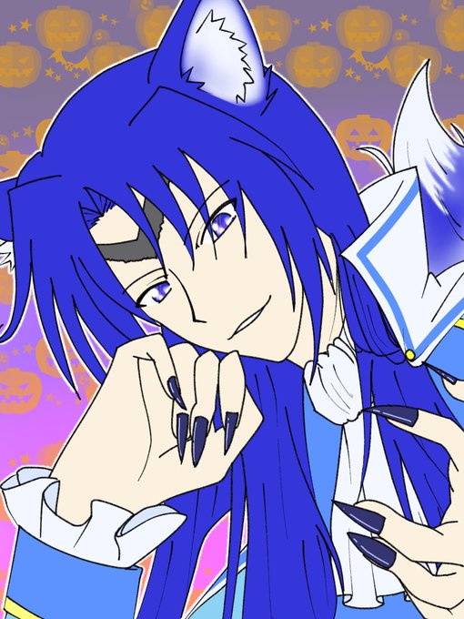 #ハロウィンイラスト展示会2021 取り急ぎ描きました…… 狐だが狼だがのバカ王ですね。 文字ありとなし。 ちゃんと仮装したのは今回が初めてじゃないか?お前。