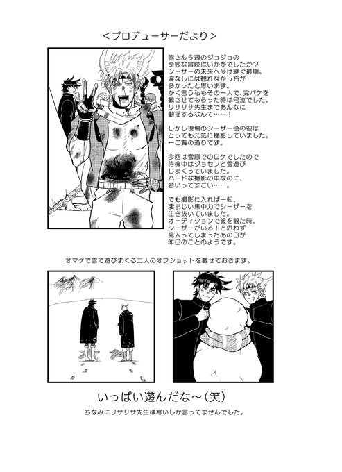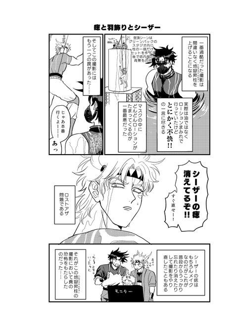 あと引き続きスパザワで出した新刊のCP無ョョpart2はもせ中心実写ドラマパロ本のBOOTH通販を行ってるのでよろしゃす〜!今更ですが表紙の兄弟子に痣がないのはミスではなく、本文のここ(2枚目)辺りのつもりなので描いてないやつです。あんま言ってなかったので……