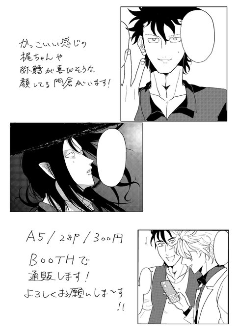 8/28の #笑うかどかじ に出すusgi門梶本の新刊サンプルあげました!専属になって欲しい梶と塩対応な門の話です。A5/28P/300円です。今回は0時にBOOTHを開けた後、7時、21時頃にも在庫を追加する予定です。もちろん最初にがっつり入れますが……!よろしくお願いします🙇♀️