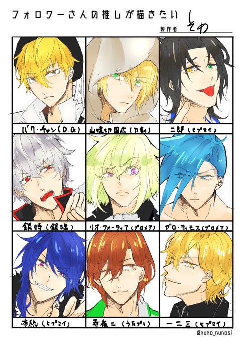 # フォロワーさんの推しが描きたい お待たせしました〜!!初描きのキャラばっかりでめっっちゃ楽しかった…!!😳😳✨✨ 参加してくださった方ありがとうございました〜!