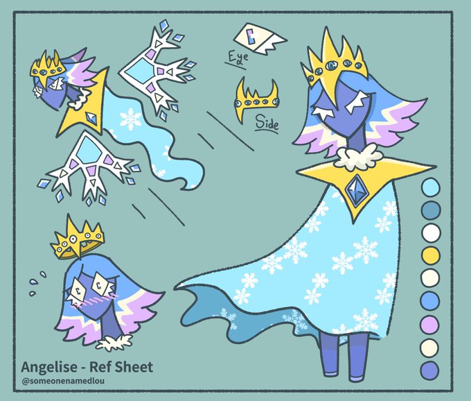 Her name is Angelise, she's a guardian angel w/ ice powers! Also based off of a snow angel/biblical angel.❄️👼👑👁️