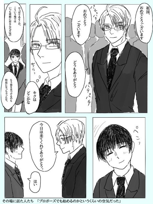 いろんな人や92にお祝いの言葉を貰ったアルフレッドが最後に行き着く先が菊さんのもとだと嬉しいなっていうアル菊漫画です😌アルフレッドおめでとうー!✨