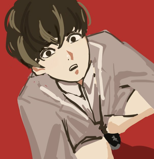 난 이 두 그림을 내가 동시에그렸단게좀웃김 외모지상주의에 등장하는 10대 소년이 단색 배경 앞에서 쭈그려 앉아 카메라를 보고 웃고 있는 두 그림 근데이제 캐해가다른
