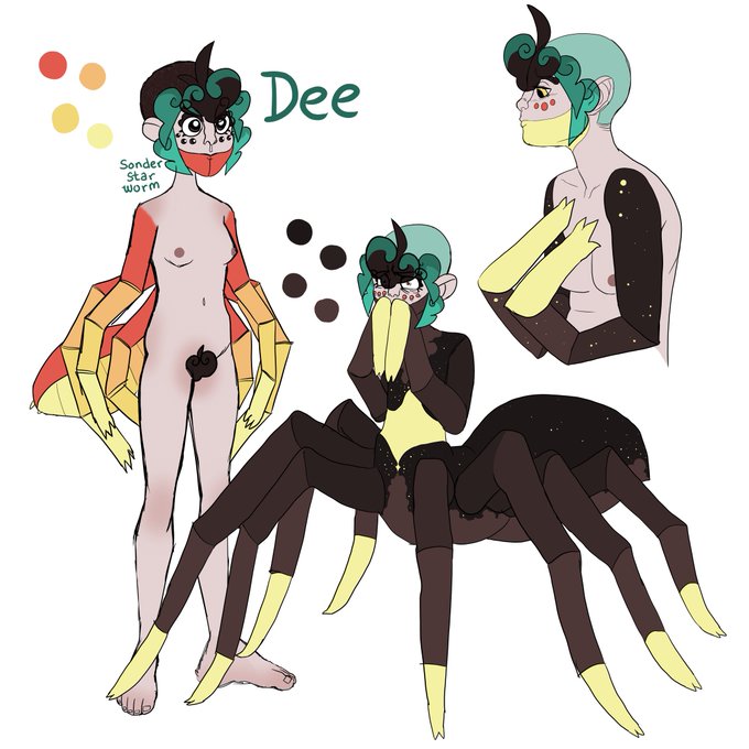 another oc!! "Dee" Jones! (Dee is the nickname she goes by) these are just concepts, nothing's finalized. Basically, she died and was revived by her sis and was accidentally fused with a magic spider thing? #originalcharacter