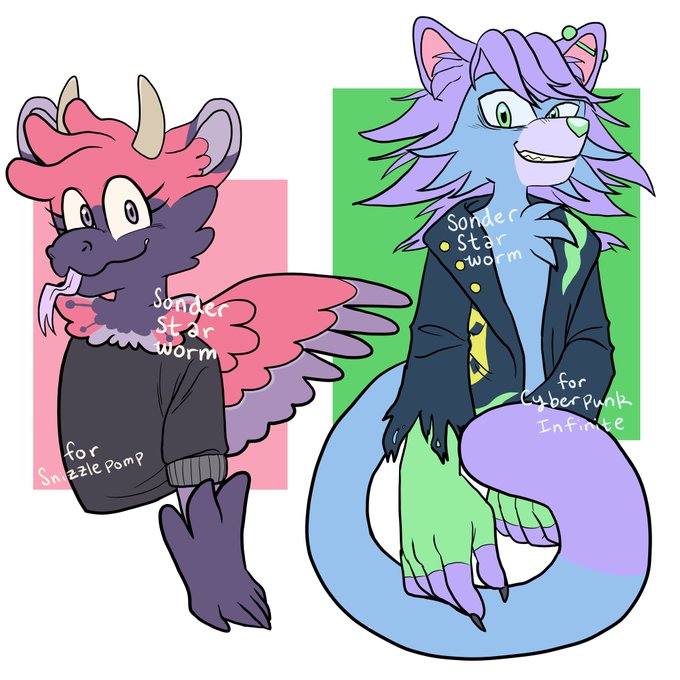 Completed sona reference sheet commission + bonus art for my friend, @v6mp6r6 ! Go check out her art, it's rad! #refencesheet #Fursona #commission