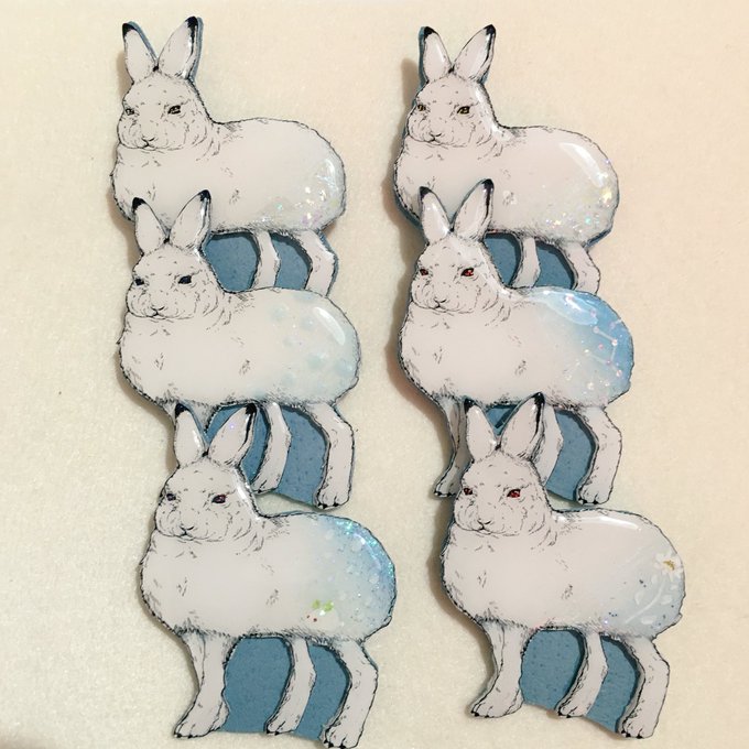 ホッキョクウサギも完成〜! デザフェスとニッチアニマルズで半分ずつ連れてこうと思ってるけどお尻の柄が皆違うからどの子をどっちに連れてくか迷う〜💦