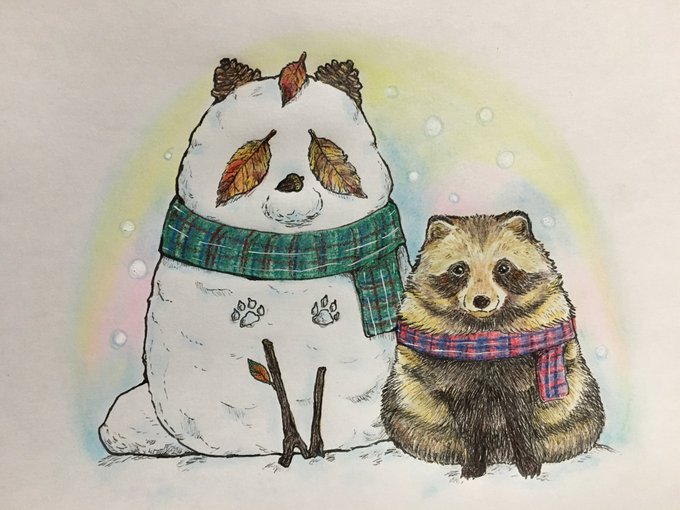 めっちゃスタンダードなマフラーになった(笑) メッセージカードになる...はず!! タヌキと雪だるま