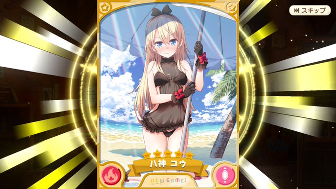 |д゚)チラッ 忘れないうちに限定水着復刻星5確定チケットを引いたら今イベのひふみんが来なすぎて意気消沈している所水着復刻ガチャで水着コウちゃん来てくれてモチベが上がったわ(笑)まだ持ってなかったから嬉しいぞい♪💕🌈🏖️(≧▽≦)