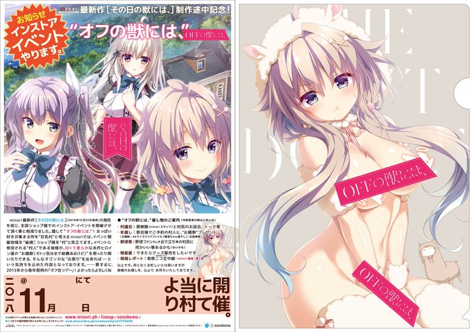 【の】『その日の獣には、』ご予約受付中! ショップさん店頭でのご予約キャンペーン、全国オフ会ツアーでのご予約プレゼント(概要はサイトにアルヨ&開催リク募集中)、そしてミノリぼったくり通販版(そのけもサイトからどうぞ)といろいろあるのでよかったら是非チェックしてみてね!