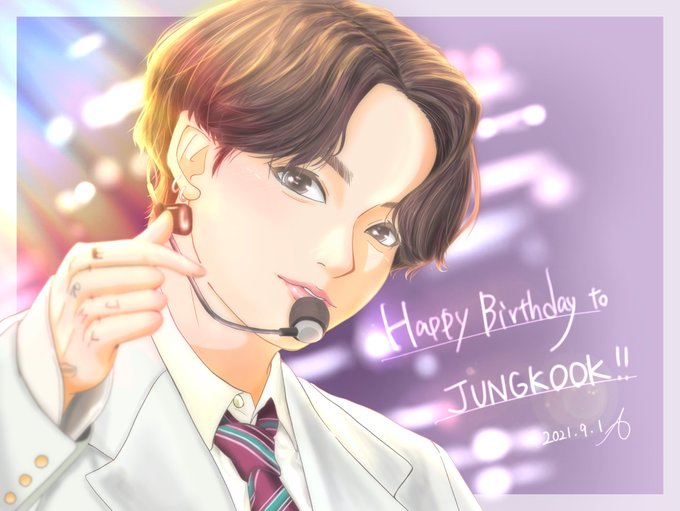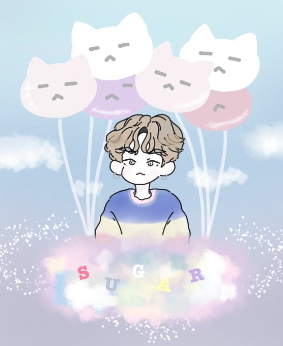もうね、少女漫画の輝きかな…!?ってくらいの光とツヤ感。彼ら自身とても輝いている人たちだけど、あおちゃんの絵によってそれがもっと際立っててアイドル!って感じがします。美だね、色遣いが繊細で丁寧で私はこのグクに恋に落ちたよ。迎えに来て(?)