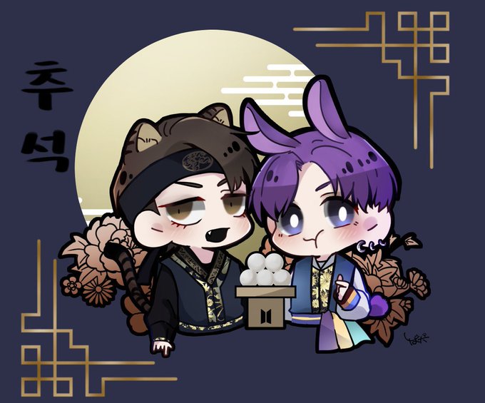 このチュソクの二人すごい可愛い、、特にテテの目がすごく可愛くデフォルメされていて好きです、八重歯も🥹🫰🏻