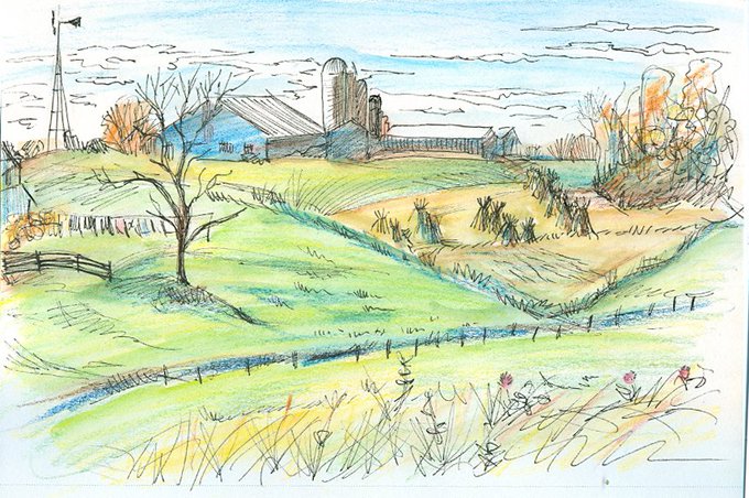 sketches from Amish country--pen and watercolor pencil